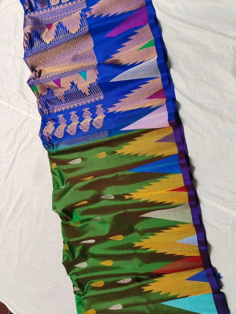 The saree's rich texture and detailed craftsmanship make it ideal for weddings and cultural events.