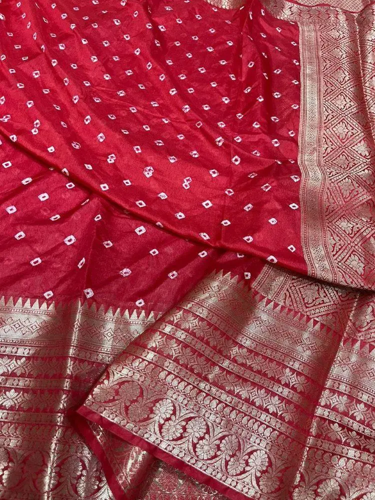 Banarasi Munga Bandhani Splendor In Regal Red Code : MJSPBAMB1030RD