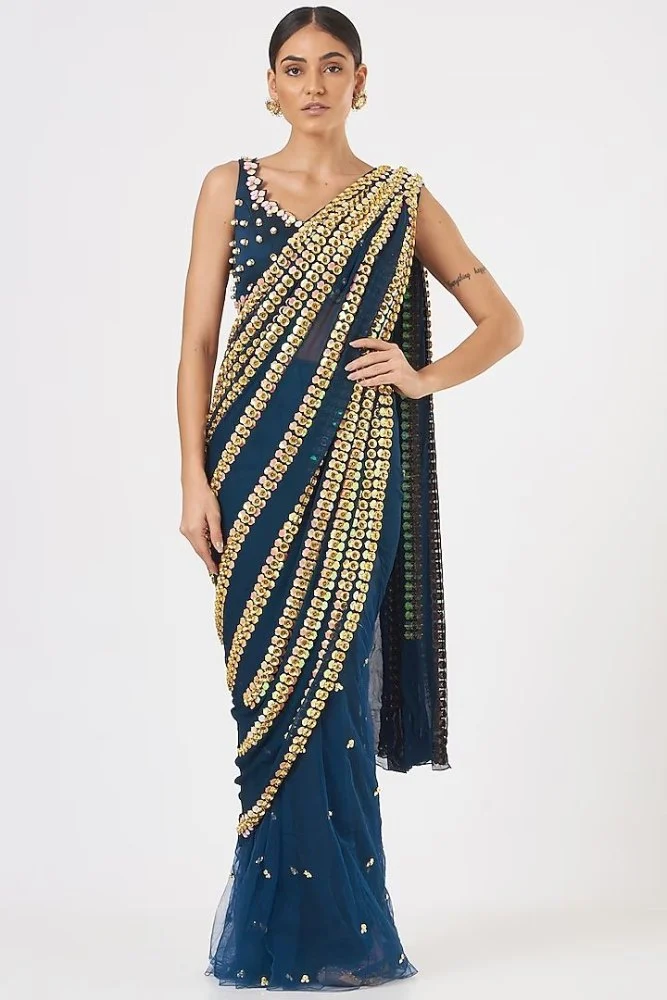 The Designer Blouse shown in the Image may not be the part of standard product.