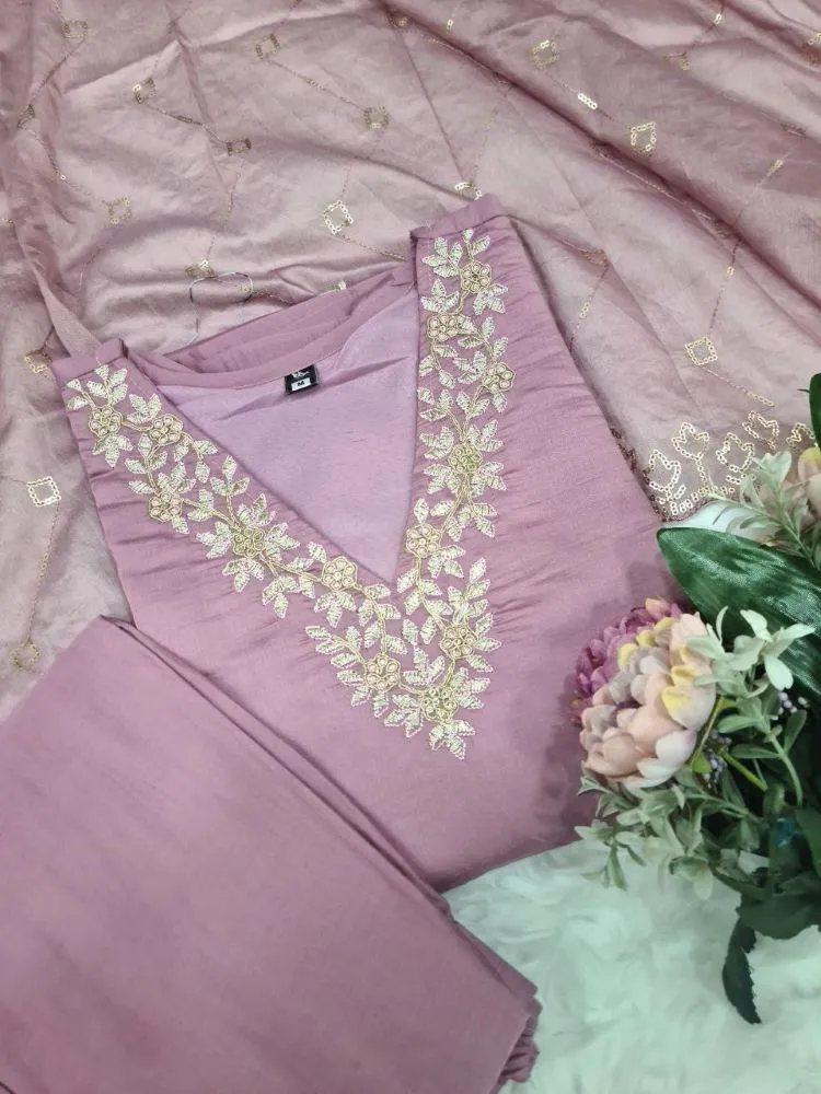 Charming Roman Silk Salwar Suit In Lavender Code : YNLCSMC770LA