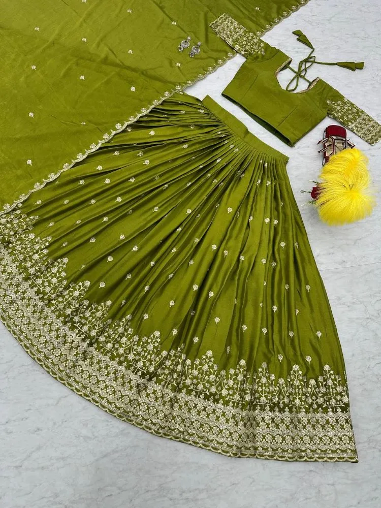 Fabulous Pure Chinon Lehenga Choli In Mehendi Code : YNLCKESH120172ME