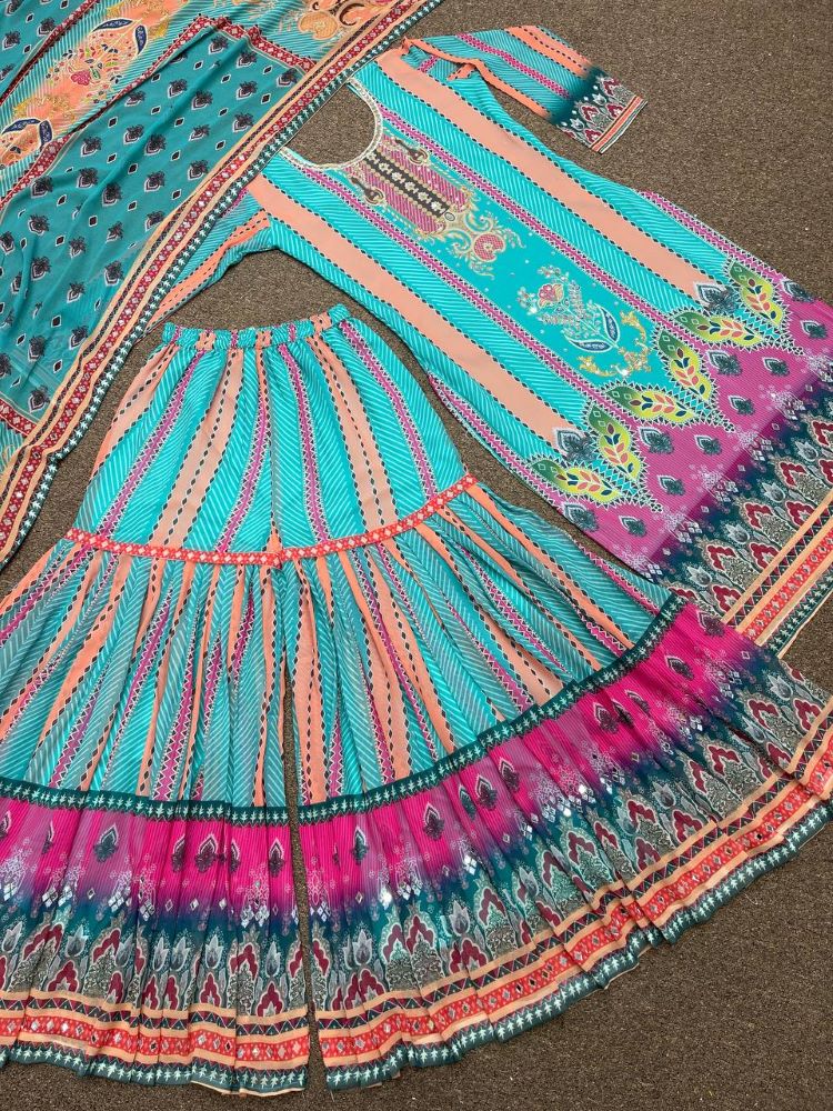 Glamorous Faux Georgette Salwar Kameez In Firozi Code : YNSKKESH1591278FI