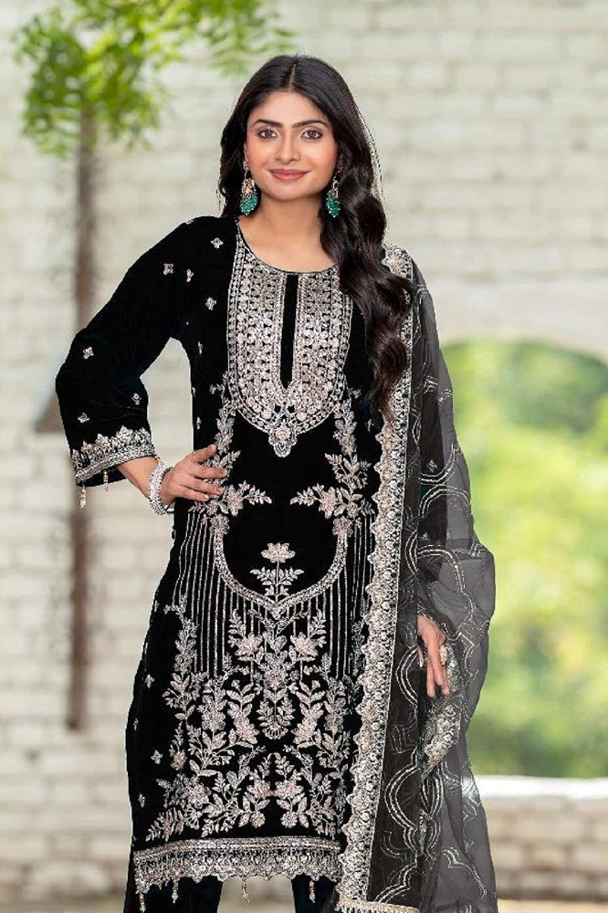 Majestic Pure Velvet Salwar Suits In Mehendi Code : TMSKVTTM123887ME