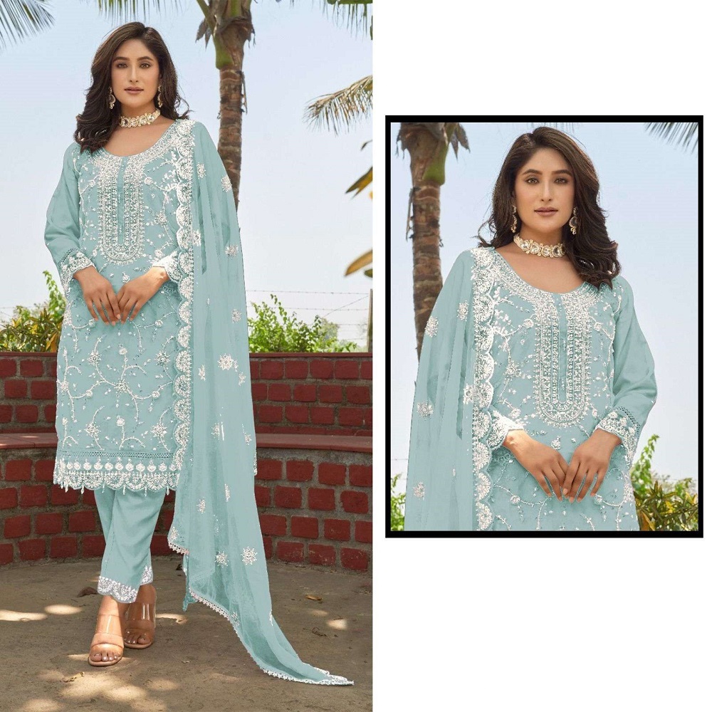 Pristine Organza Salwar Suits In Mehendi Code : TMSKORTM123871ME