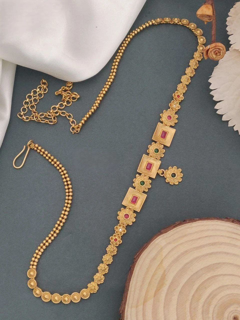 A regal statement of Rajputi heritage, our gold-plated Kundan Matha Patti, the Sheesh Phool, exudes timeless elegance and sophistication. Perfect for brides seeking royal adornment, this piece blends intricate Kundan detailing with impeccable craftsmanship, ensuring a cherished heirloom for generations.