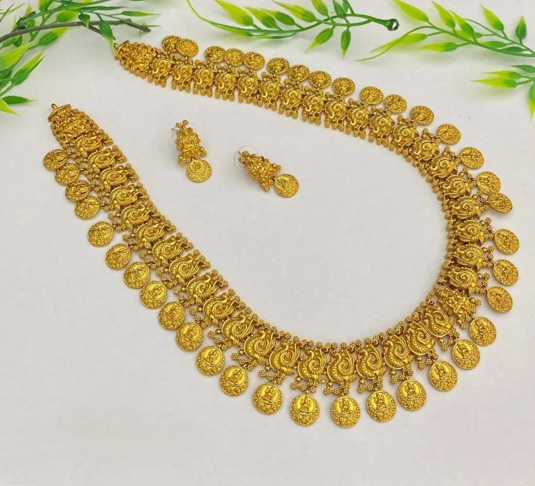 The matching earrings perfectly complement the necklace, making it an ideal set for weddings, festive occasions, or special events.