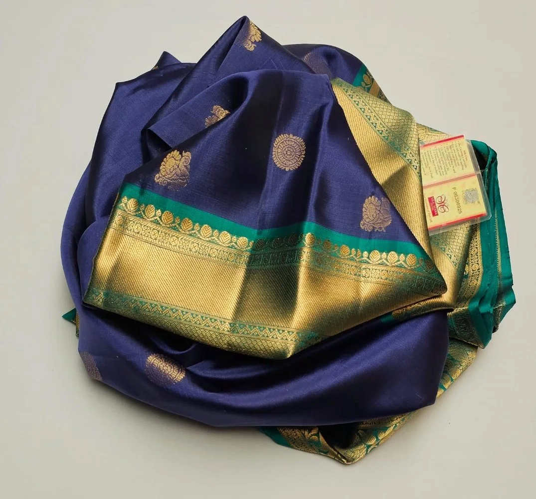 Authentic Kanchi Silk Saree With Stunning Zari Detailing In Navy Blue Code : RTSDWKS4001NB