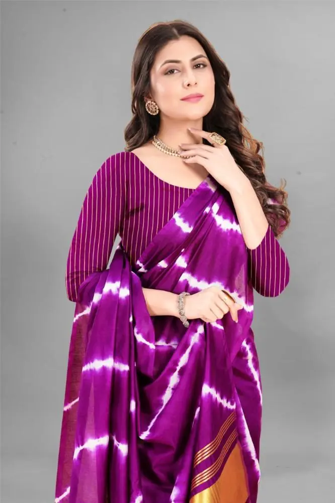 Captivating Shibori Bandhani Weave Saree In Purple Code : YNSSBSRRT1001PU