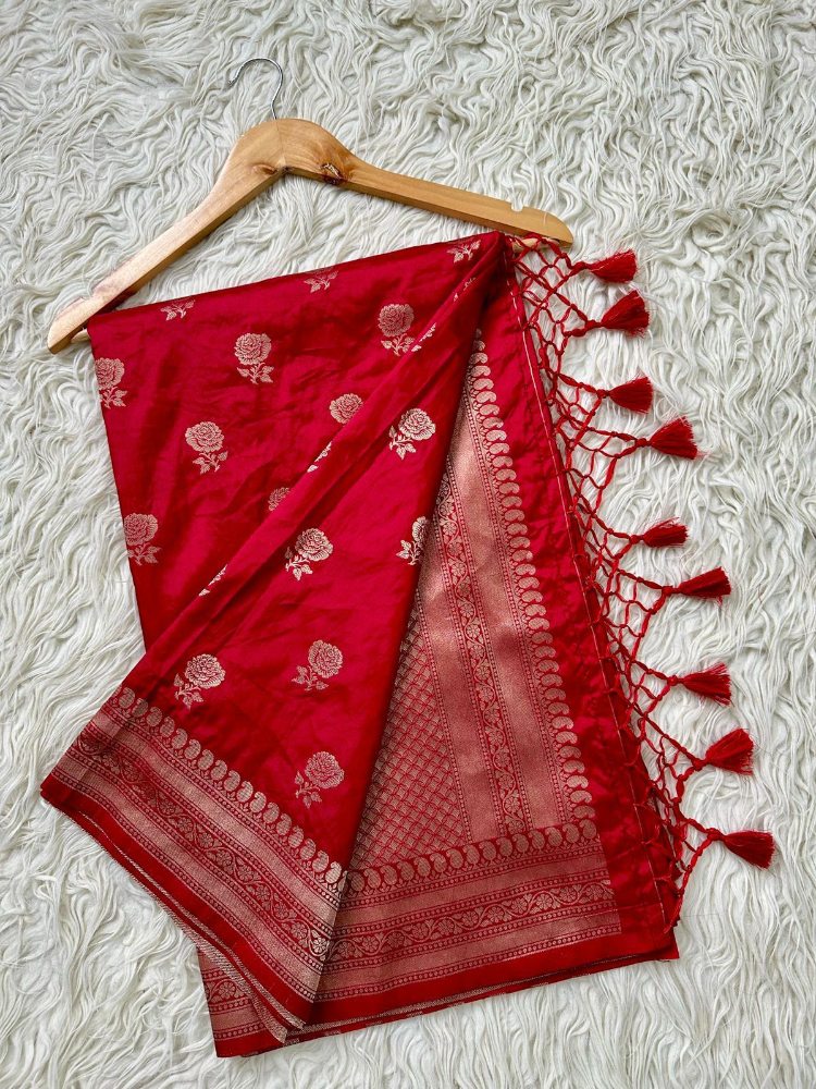 Classic Banarasi Crepe Silk Saree With Ornate Golden Zari Work In Red Code : TRBJCSK100RD