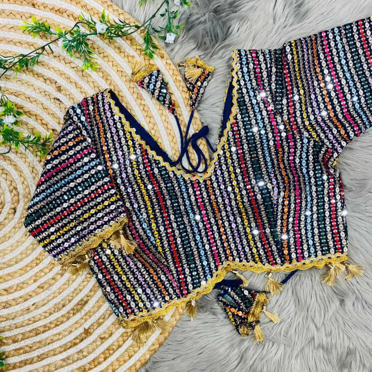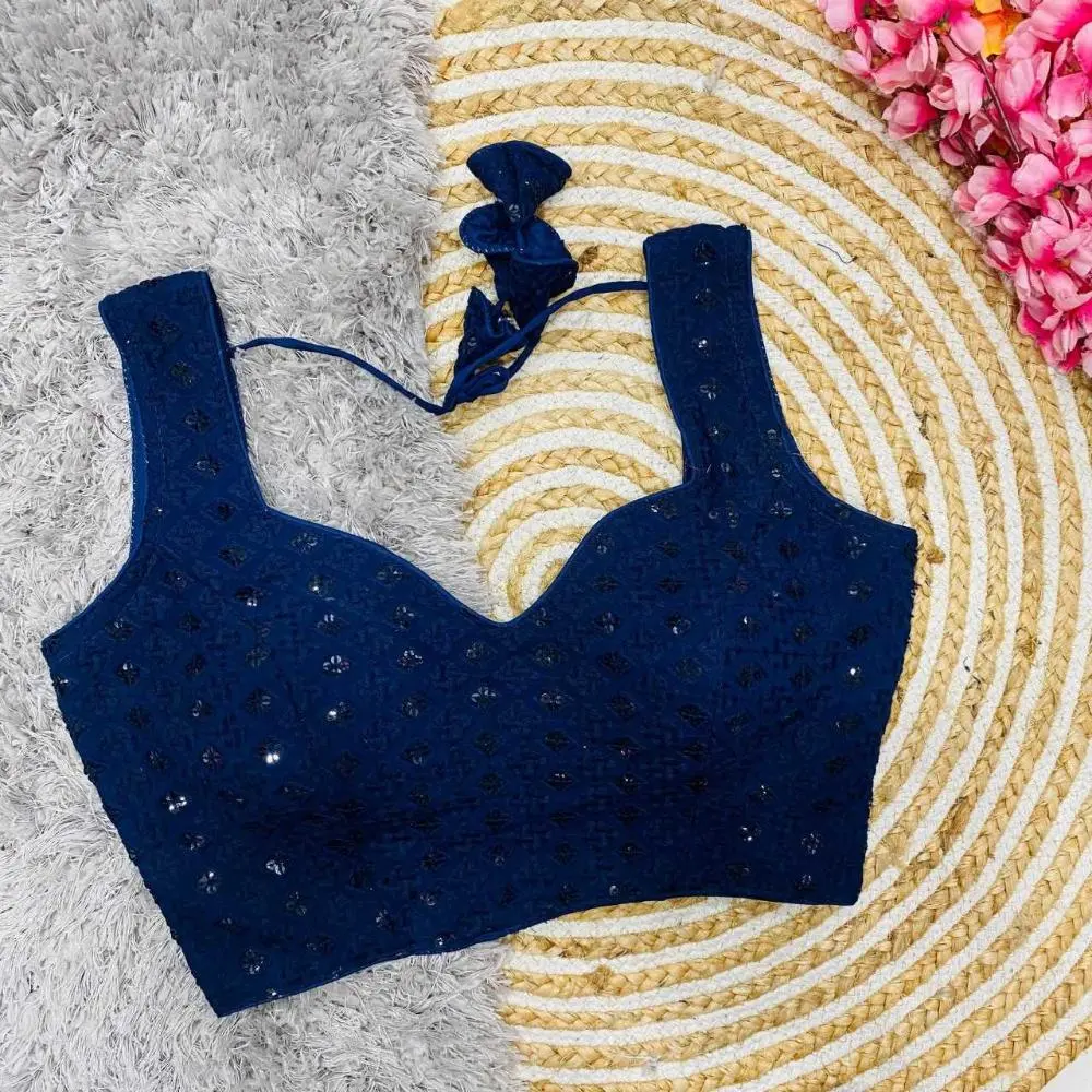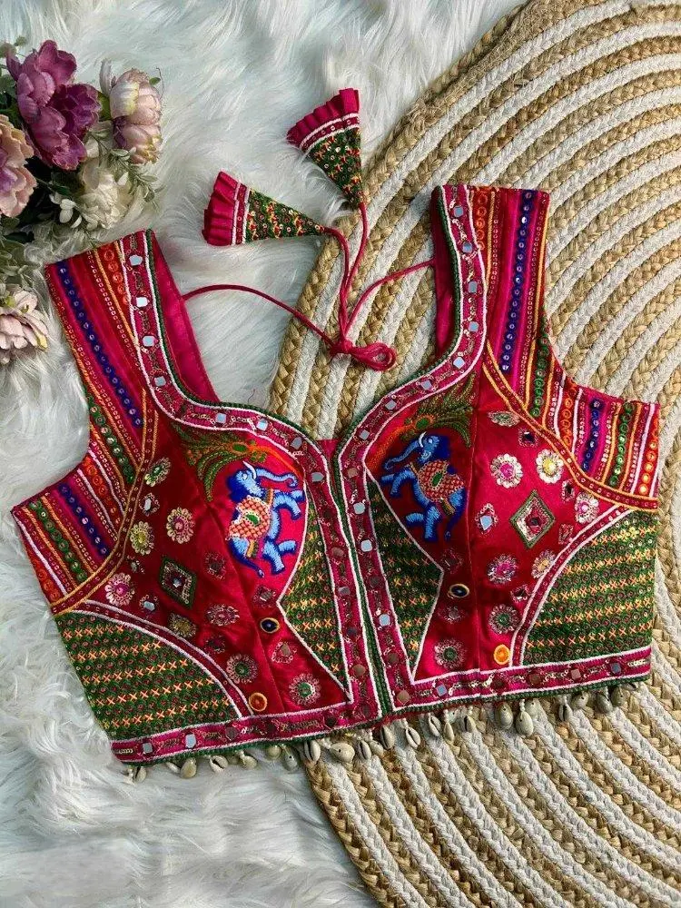 The round neck design adds a classic touch, making it a versatile choice for pairing with various sarees or skirts.
