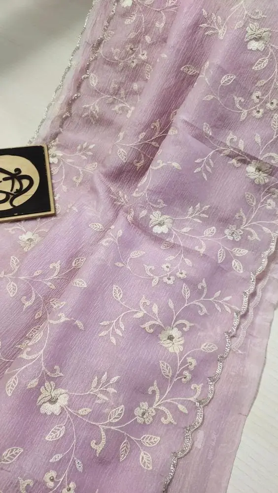 Discover refined elegance with this pure chiffon saree in soft pastel shades.