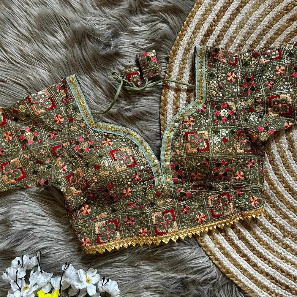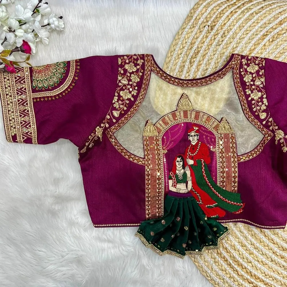 This elegant round neck designer blouse is crafted from luxurious silk fabric, ensuring a refined and sophisticated look.