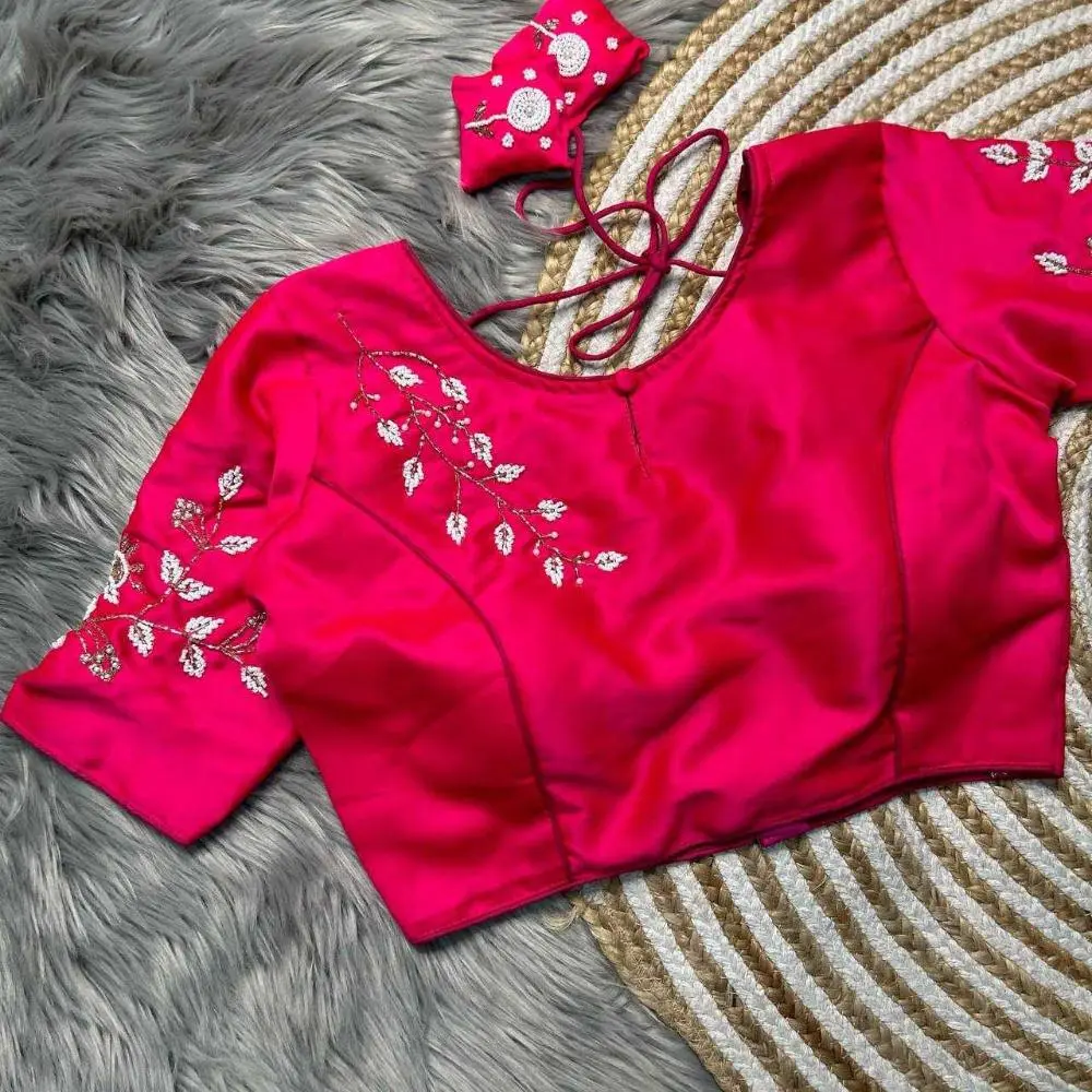 This elegant round neck designer blouse is crafted from luxurious silk fabric, ensuring a refined and sophisticated look.