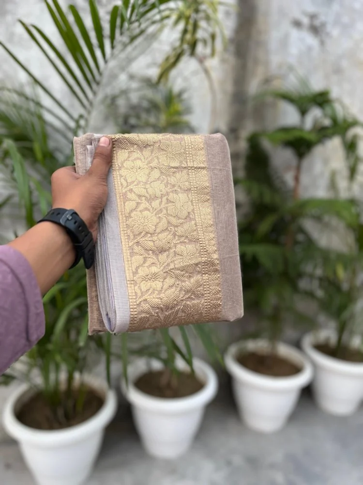 This lightweight Tissue Kota Check saree brings elegance with a modern check pattern and soft hues.