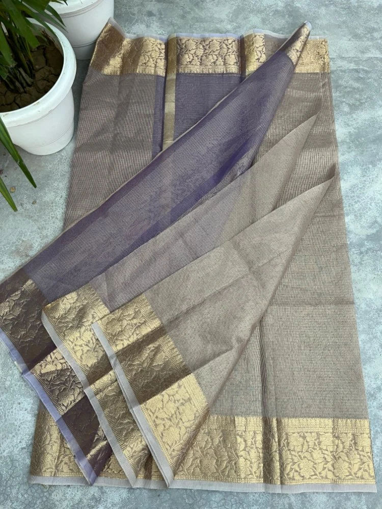 Ethereal Tissue Kota Check Saree With Subdued Elegance In Purple Code : GOSSKTSK2300PU