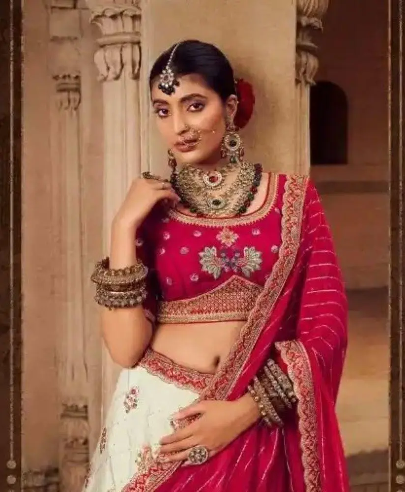 Discover elegance with our stunning Viscose Lehenga. This exquisite ensemble features intricate embroidery work on the lehenga, creating a sophisticated and timeless look. Paired with a matching unstitched blouse adorned with similar embroidery, you can customize it for the perfect fit. The ensemble is completed with a beautifully woven dupatta, adding a touch of traditional charm. Ideal for weddings, parties, and festive occasions, this lehenga is designed to make you shine.