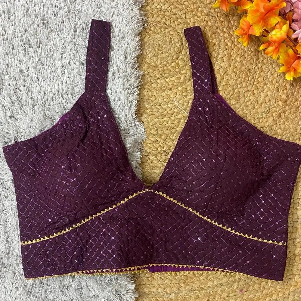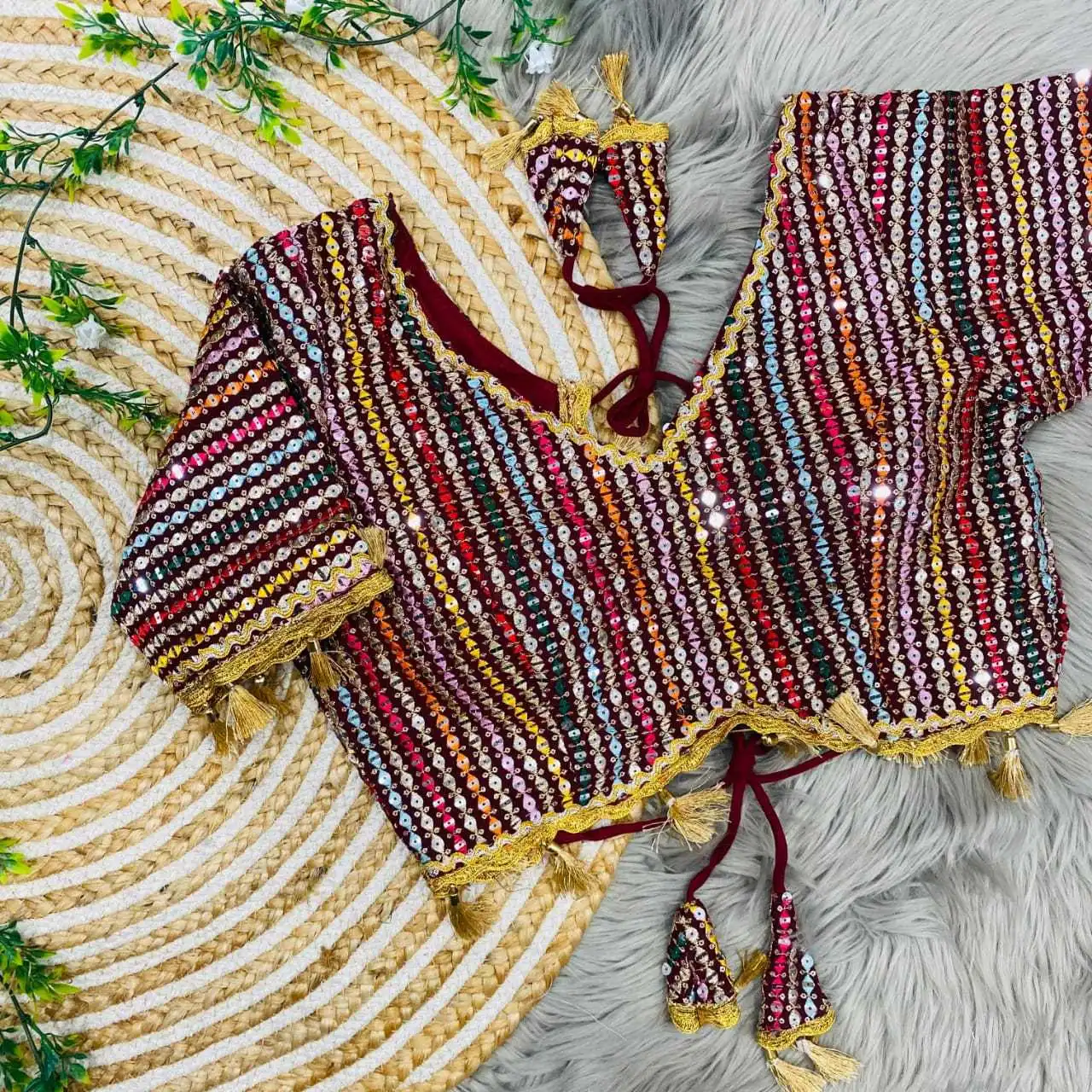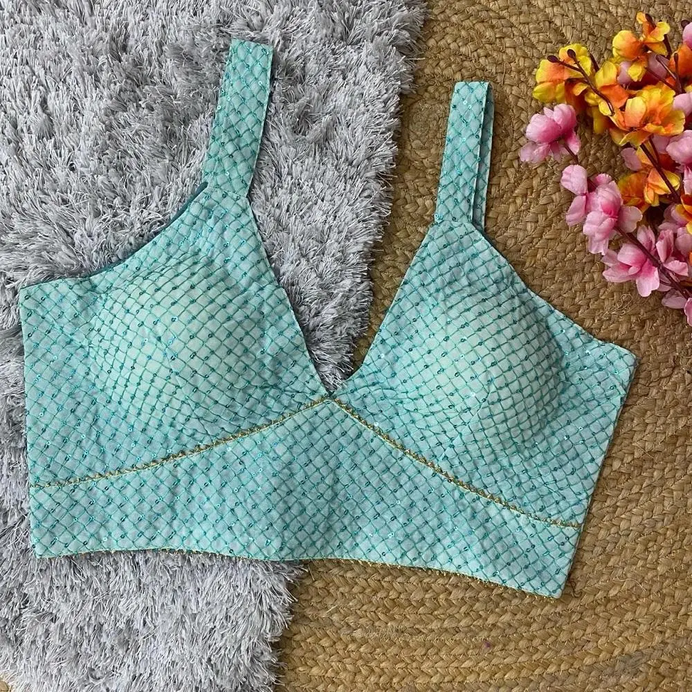 The round neck design adds a classic touch, making it versatile enough to complement a variety of sarees or lehengas.