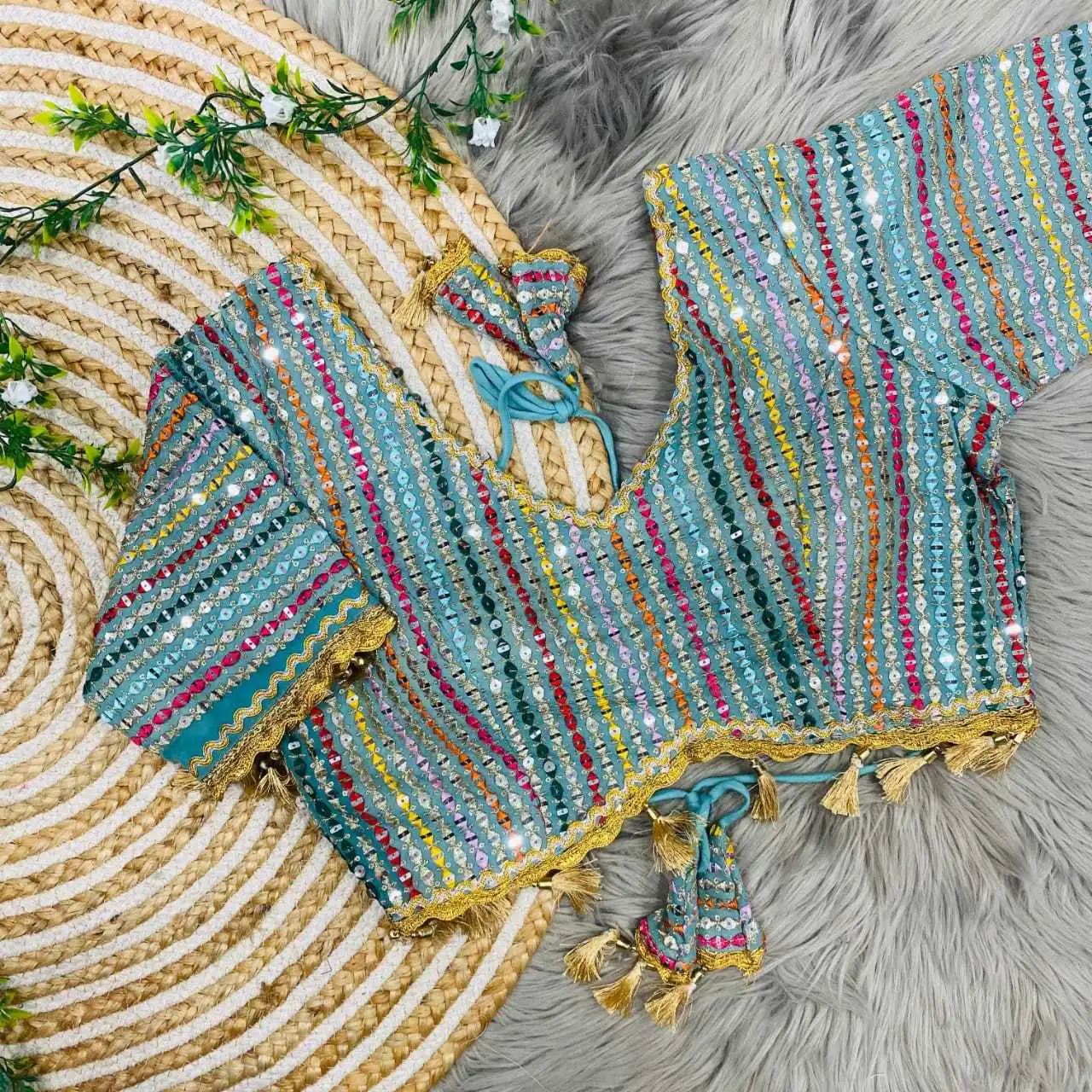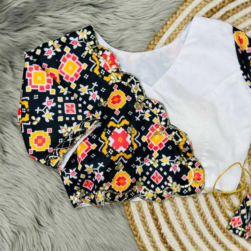 Ideal for both festive and casual occasions, this blouse combines elegance with a contemporary flair.
