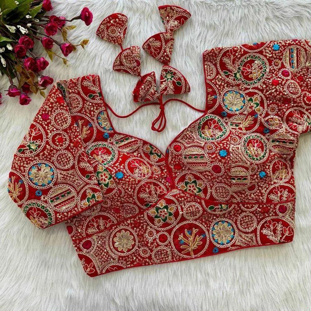 The round neck design adds a classic touch, making it versatile enough to complement a variety of sarees or lehengas.