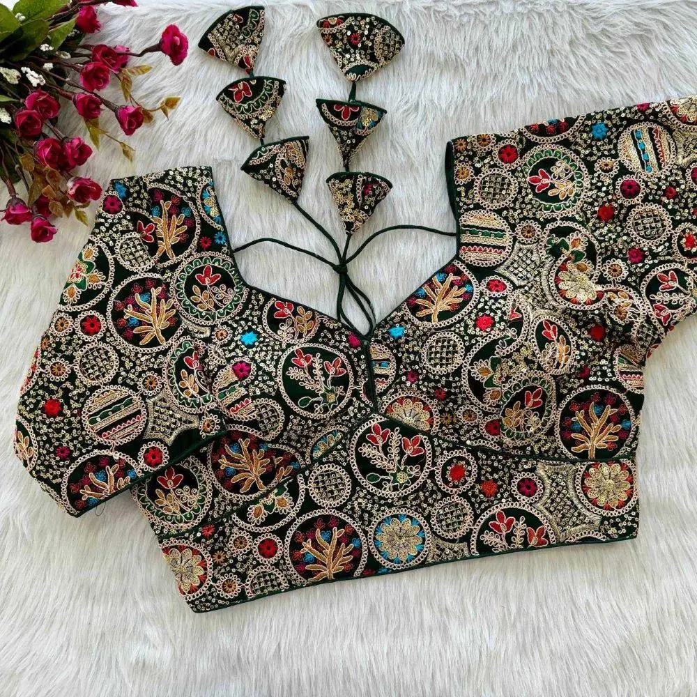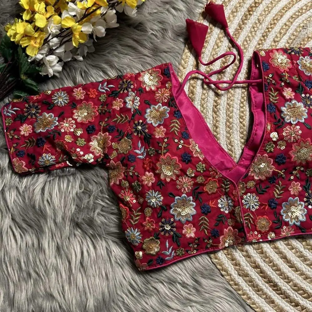 Ideal for festive occasions, parties, or weddings, this blouse enhances any traditional outfit with its chic and sophisticated appeal.