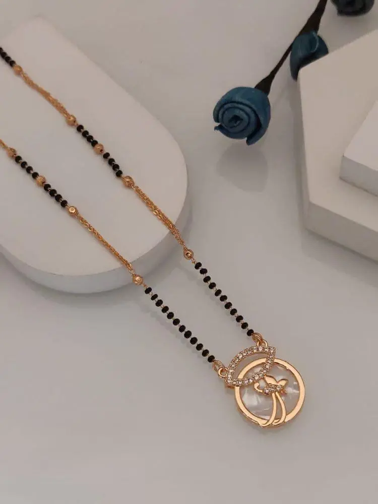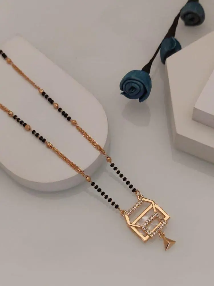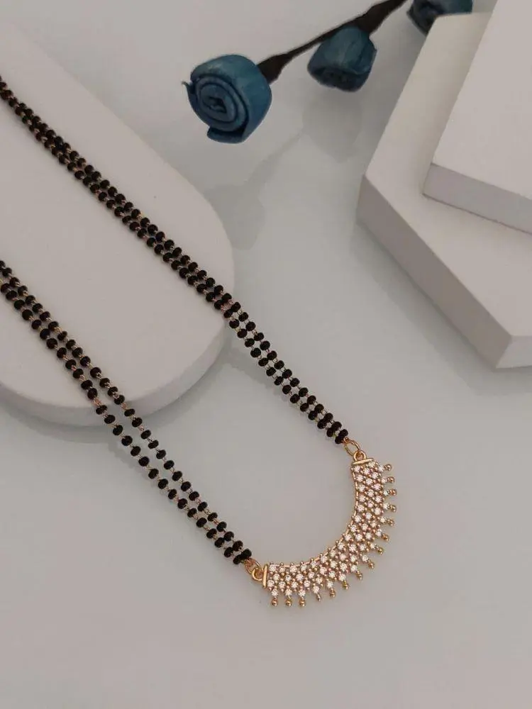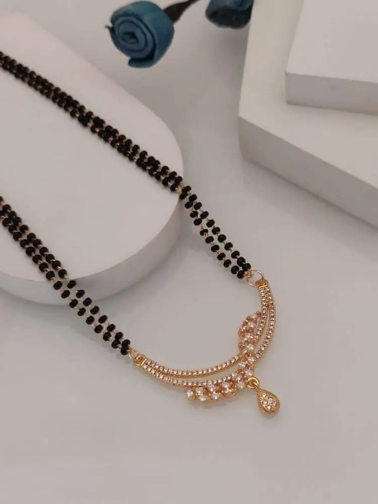 This traditional mangalsutra has been given a contemporary twist with the addition of sparkling American diamonds.
