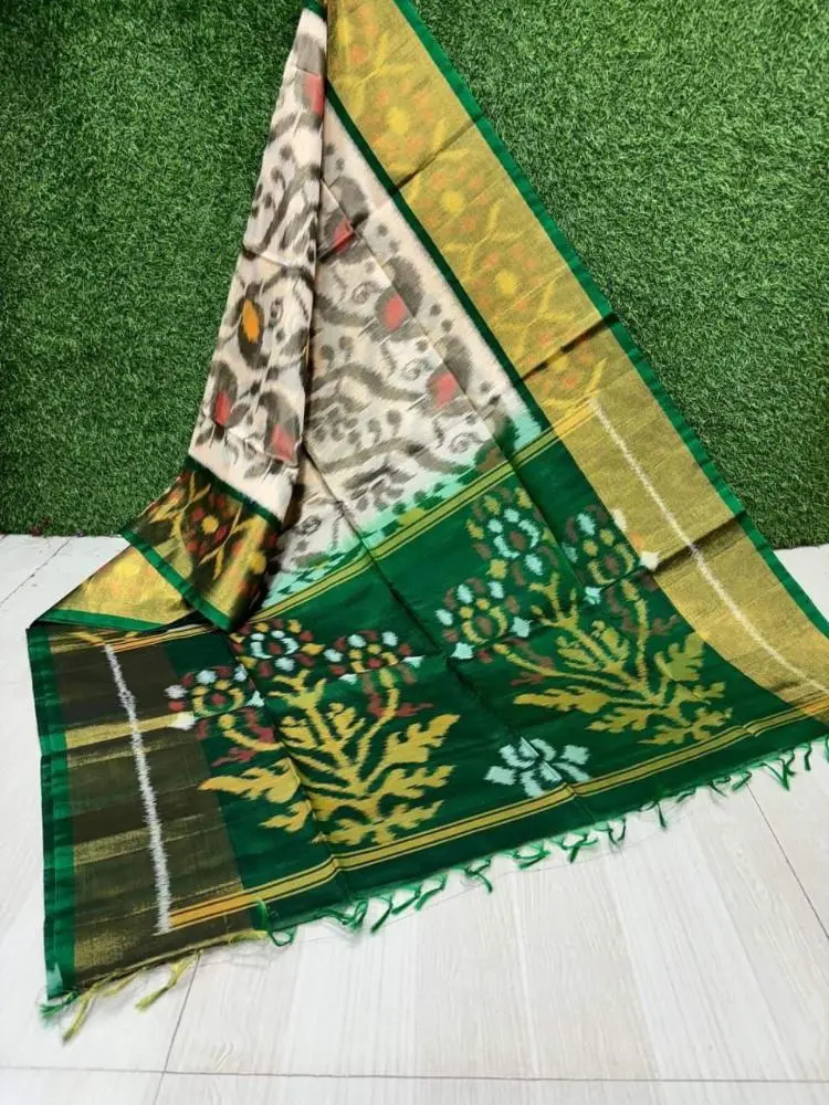 Green Chic Super Cotton Silk Saree With Double Weaving And Jaccard Borders, Paired With Patola Blouse Code : YNSCTSRRI08GR2