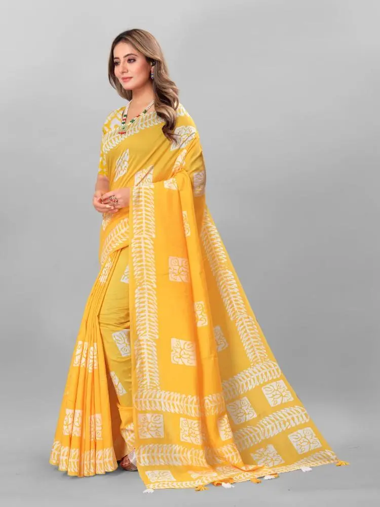 The Hand Wax Batik Saree with Printed Design is a beautifully crafted piece that highlights the art of traditional batik work.