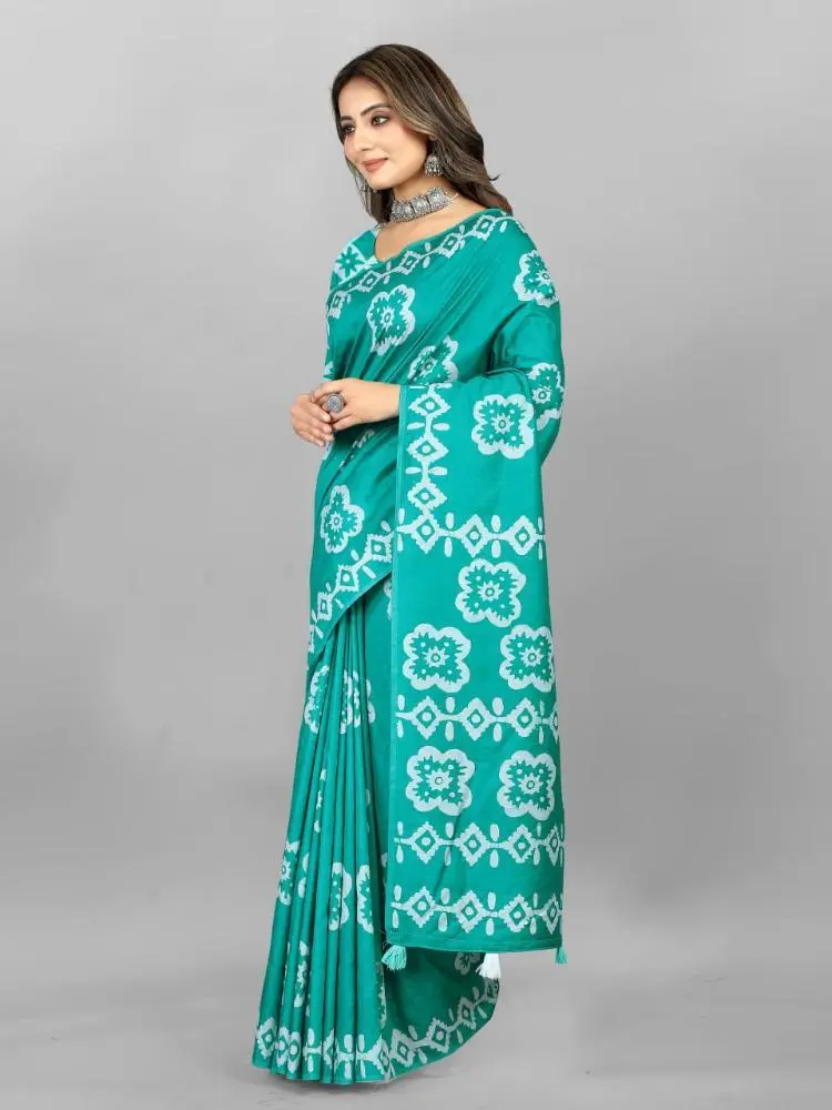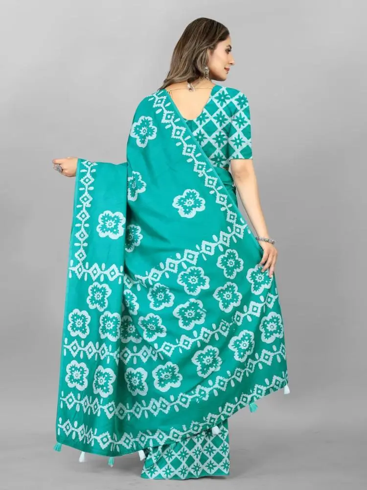 The Hand Wax Batik Saree with Printed Design is a beautifully crafted piece that highlights the art of traditional batik work.