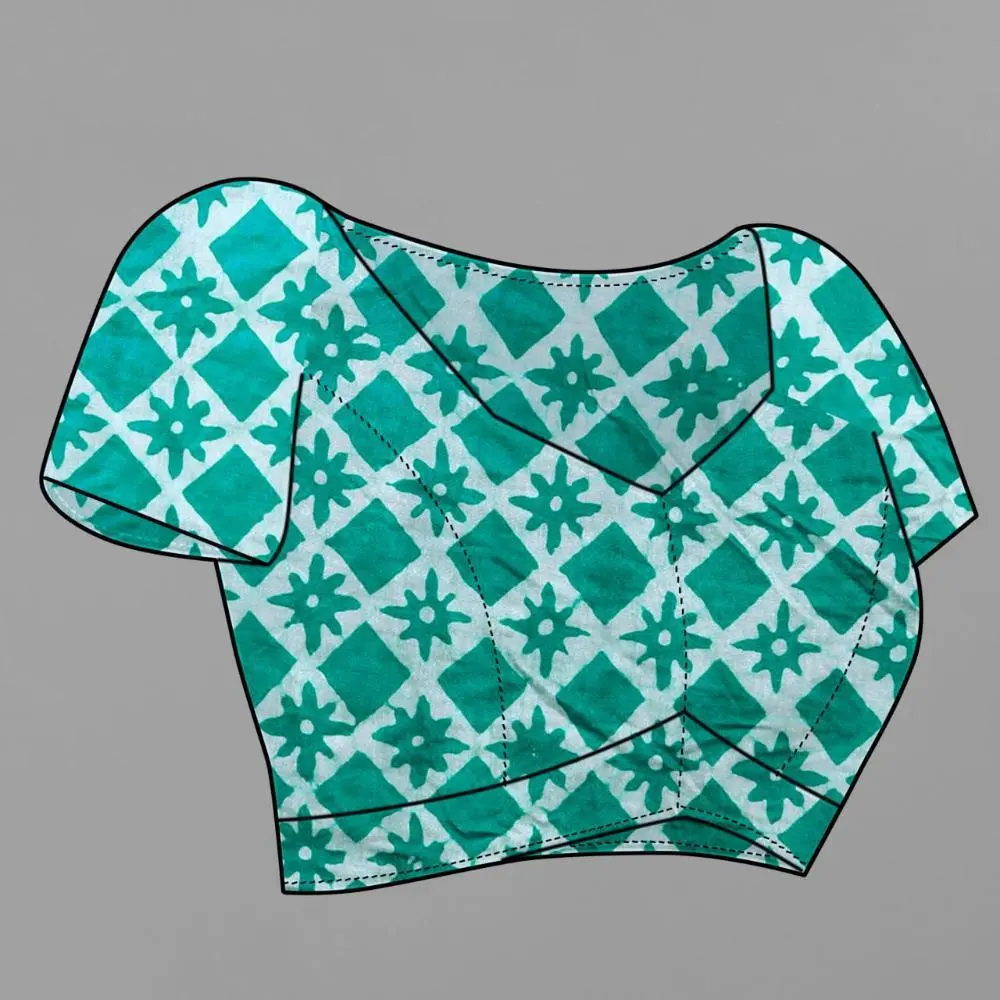 It is accompanied by a matching printed running blouse, providing a seamless and elegant look.