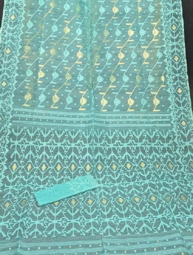 Handwoven Perfection Teal Color Dhakai Jamdani 84 Count In Soft Pastels Code : RJSDJD1057TE