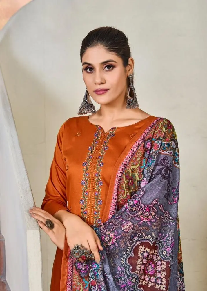 Jashn E Ishq Heavy Jam Kurti With Designer Embroidery And Cotton Mal Mal Dupatta In Orange Code : TMKPCT943006OR