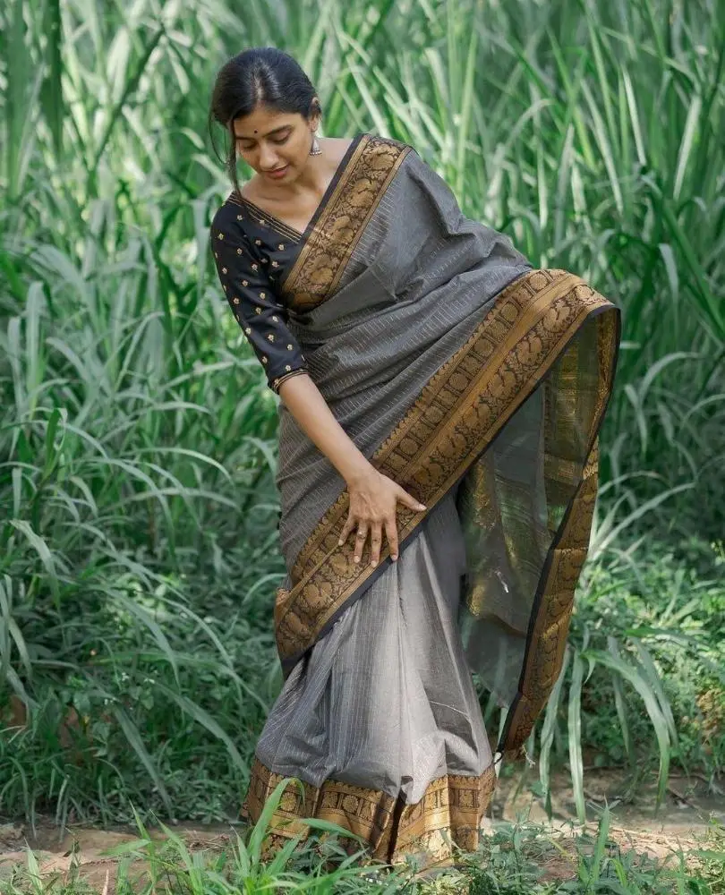 This lovely Banarasi Katan silk saree showcases beautiful craftsmanship, perfect for elevating your festive wardrobe.