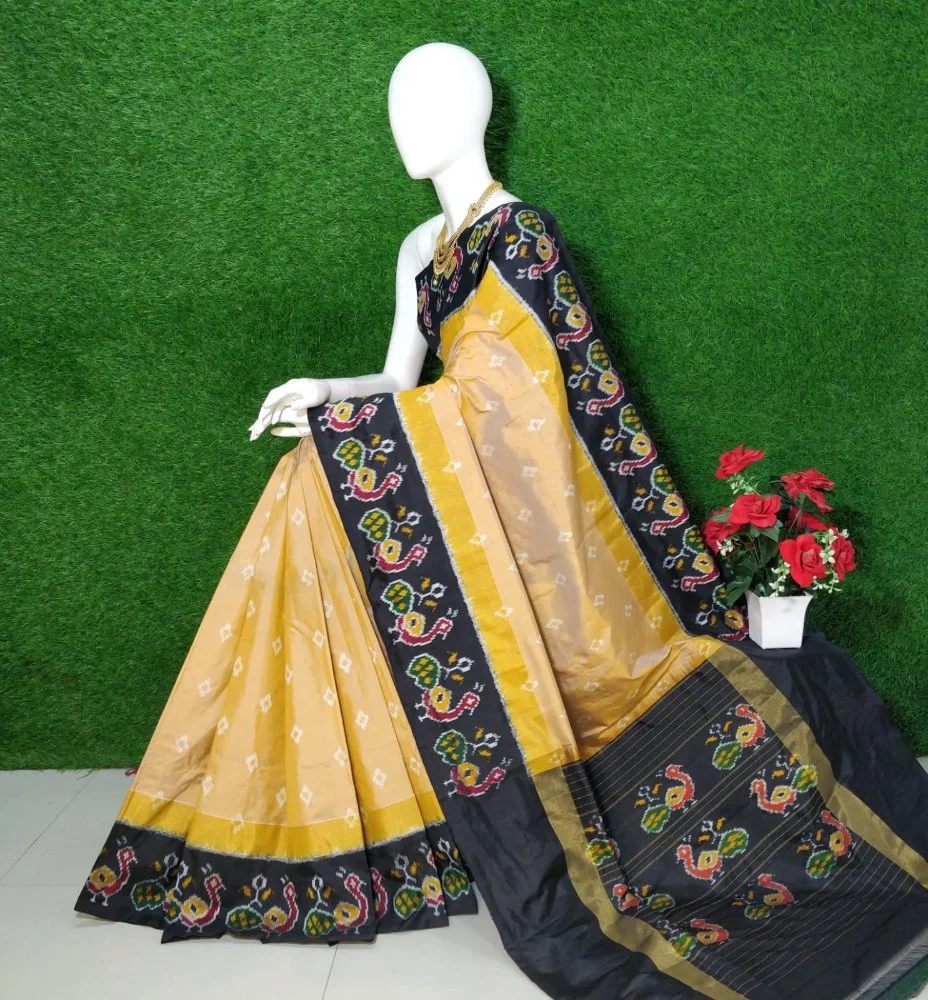 Discover the elegance of this Exclusive Ikkat Pure Silk Saree, certified with the Silk Mark.