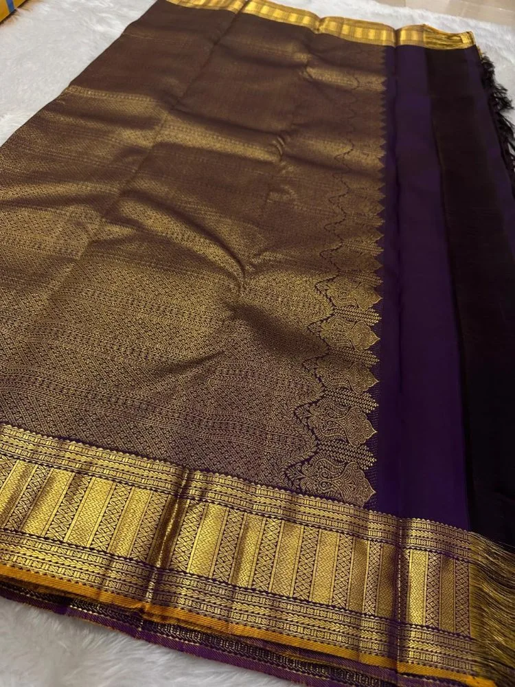 Premium Kanchipuram Silk Saree With Elegant Handwoven Pallu In Purple Code : SOMSKPSK100PU