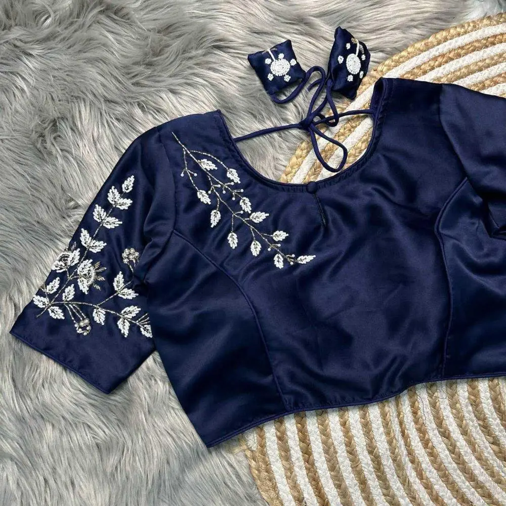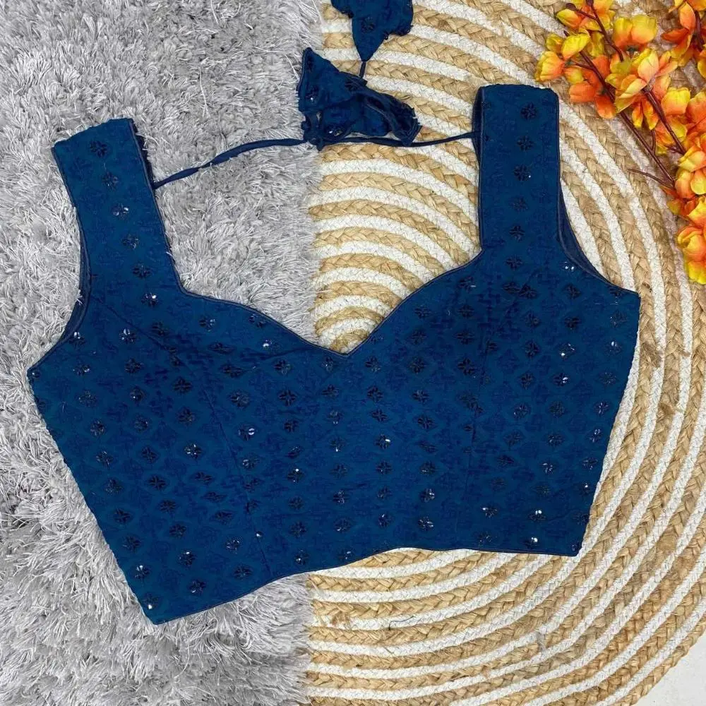 This blouse effortlessly combines modern style with traditional charm, perfect for complementing a variety of sarees or lehengas.
