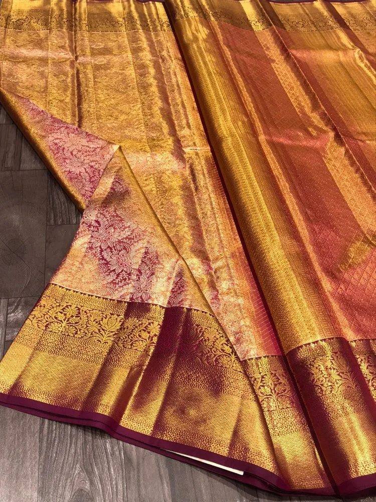 Silk Mark Certified Handloom Kanchipuram Silk Saree With Rich Pallu In Golden Color Code : SOMSKPSK100GO4