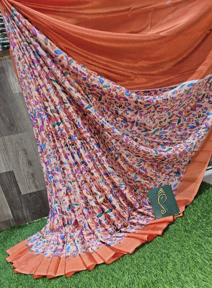 Special Edition Turkey Crape Silk Saree With Blouse In Orange Code : RTSTCP1001OR
