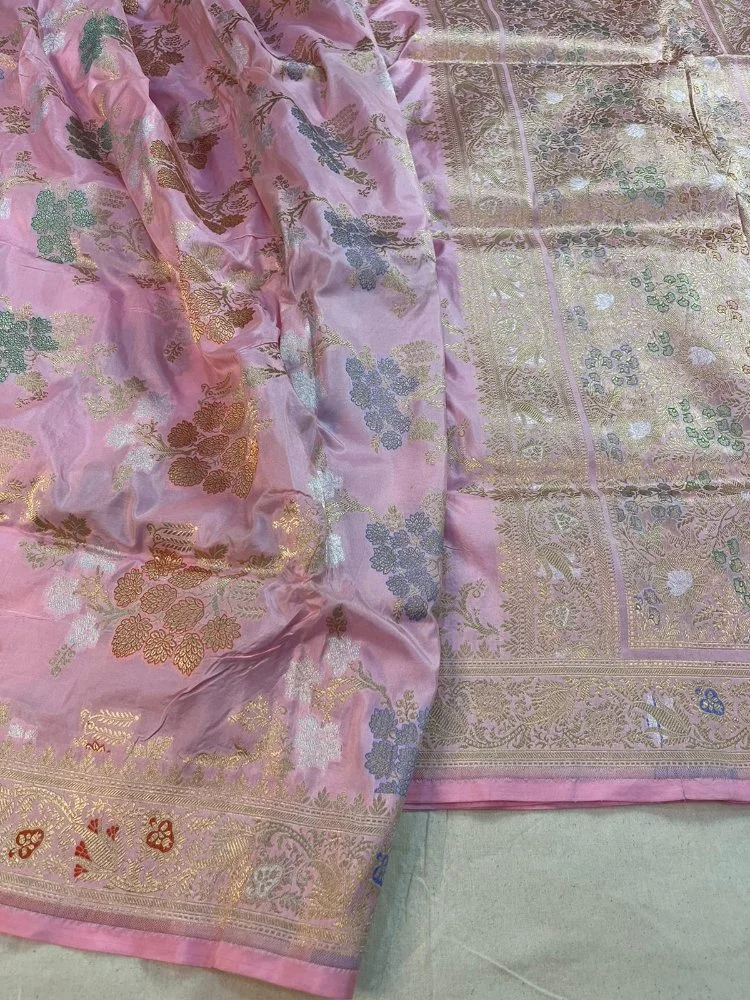 This lovely Banarasi Katan silk saree showcases beautiful craftsmanship, perfect for elevating your festive wardrobe.