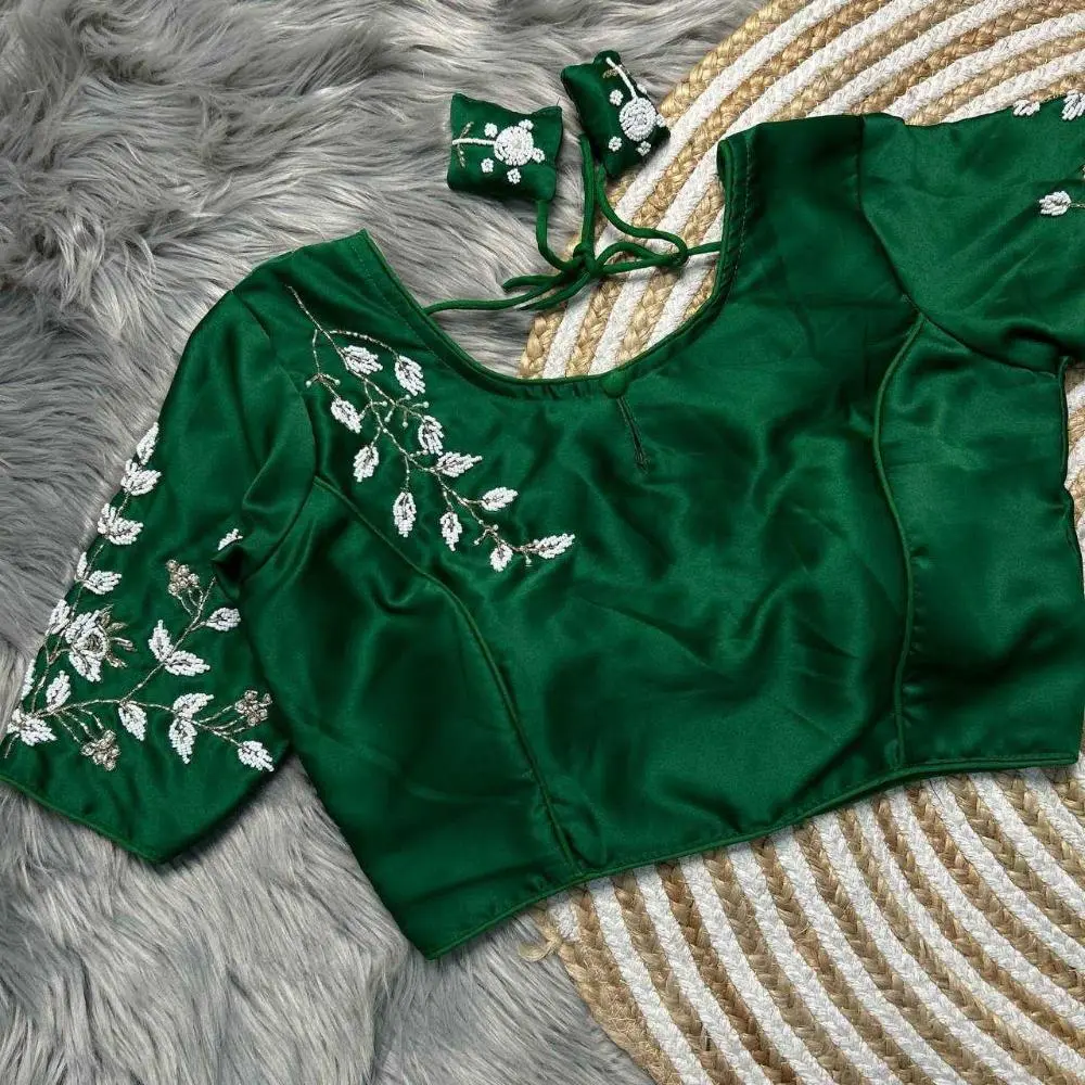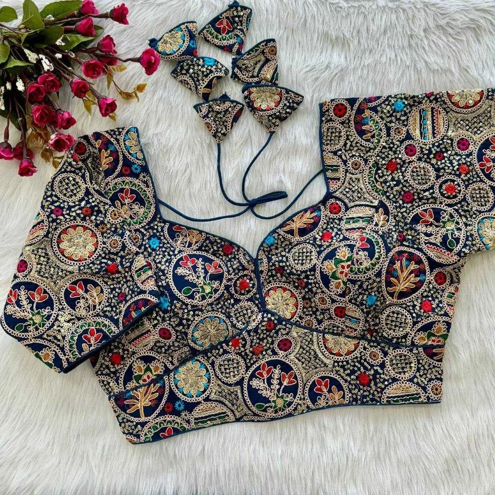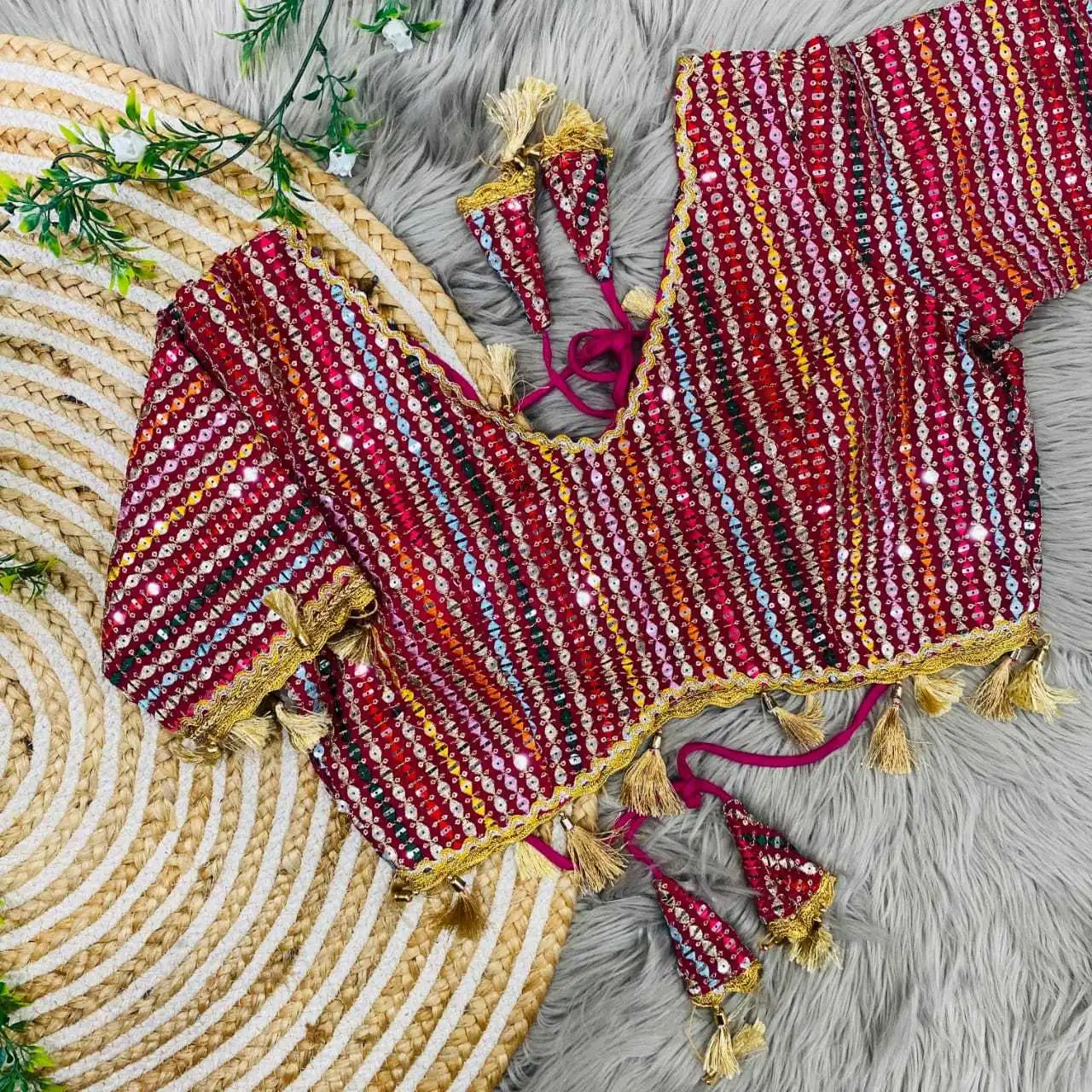 This Stunning Georgette Blouse is beautifully embellished with jari, sequence work, and gota pati lace, adding a touch of luxury and sparkle.