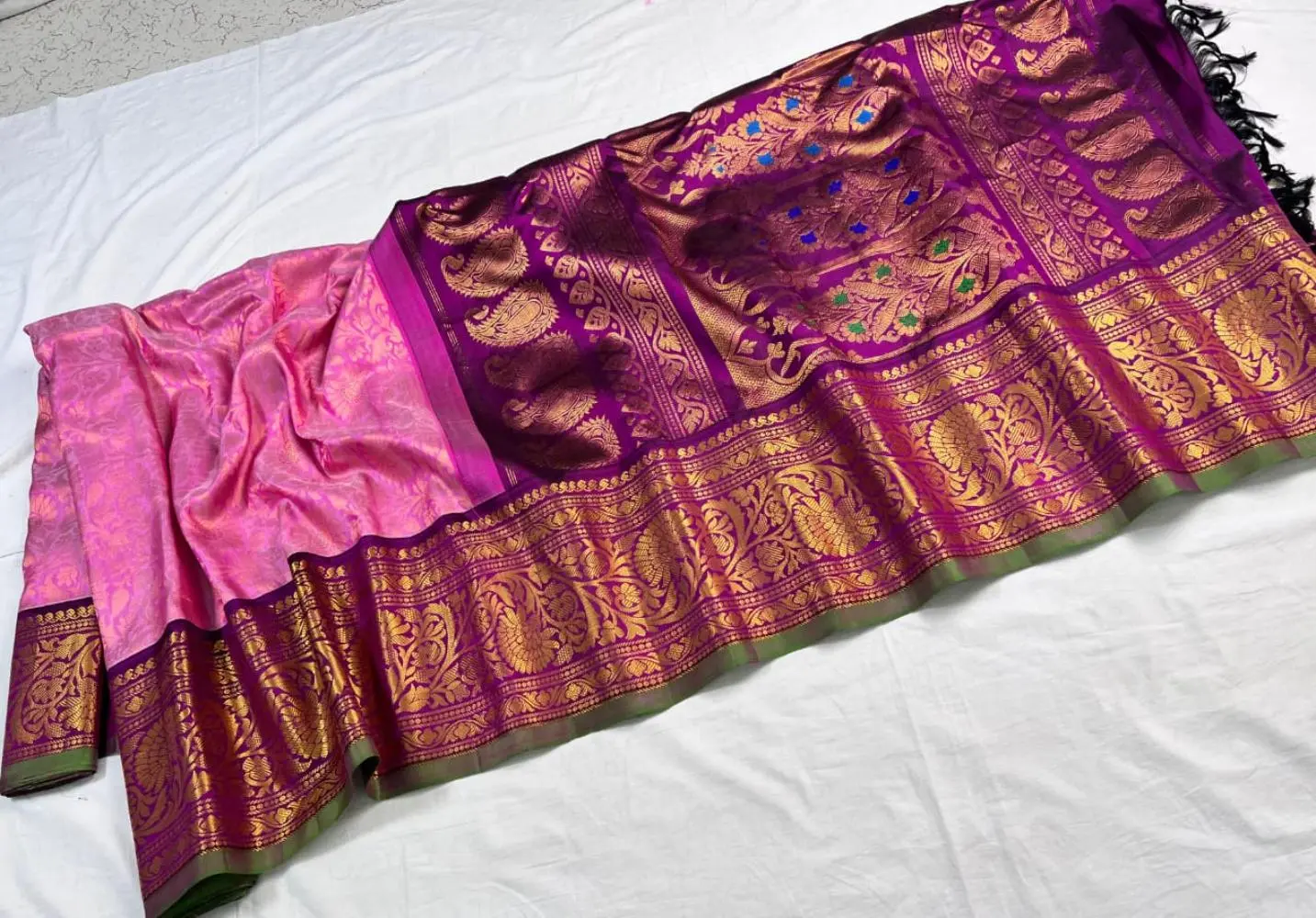 Traditional Gadwal Silk Saree With Brocade And Silk Mark In Pink Code : SHOMGDSK2001PI