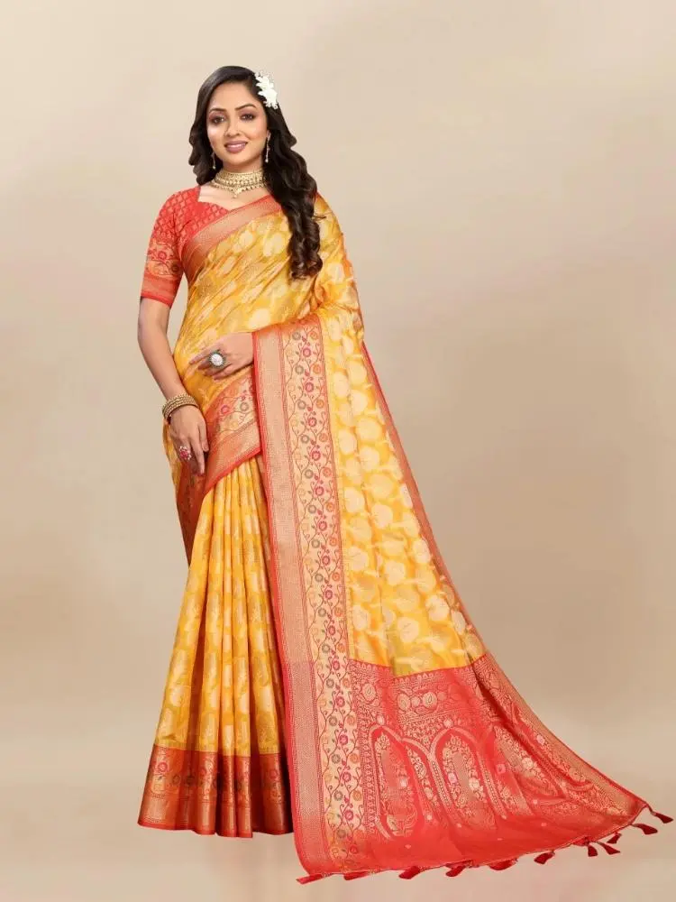 Celebrate heritage with this organza silk saree adorned in traditional Meenakari artistry.