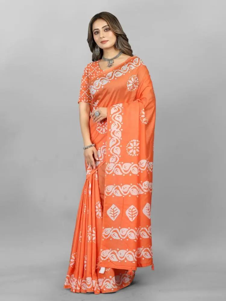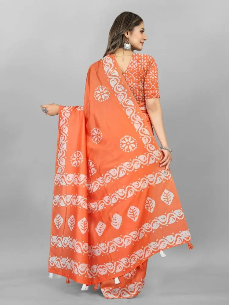The Hand Wax Batik Saree with Printed Design is a beautifully crafted piece that highlights the art of traditional batik work.