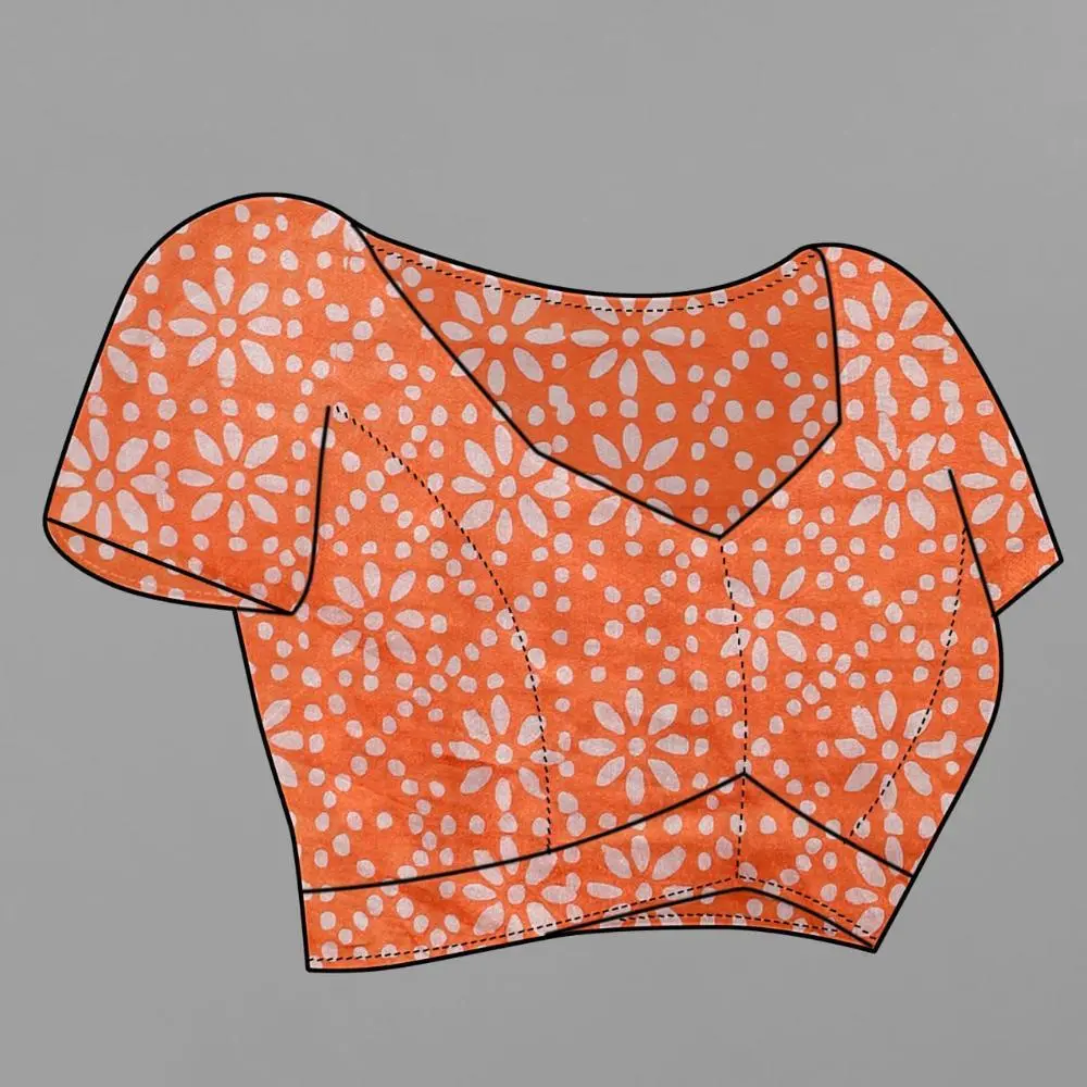 It is accompanied by a matching printed running blouse, providing a seamless and elegant look.