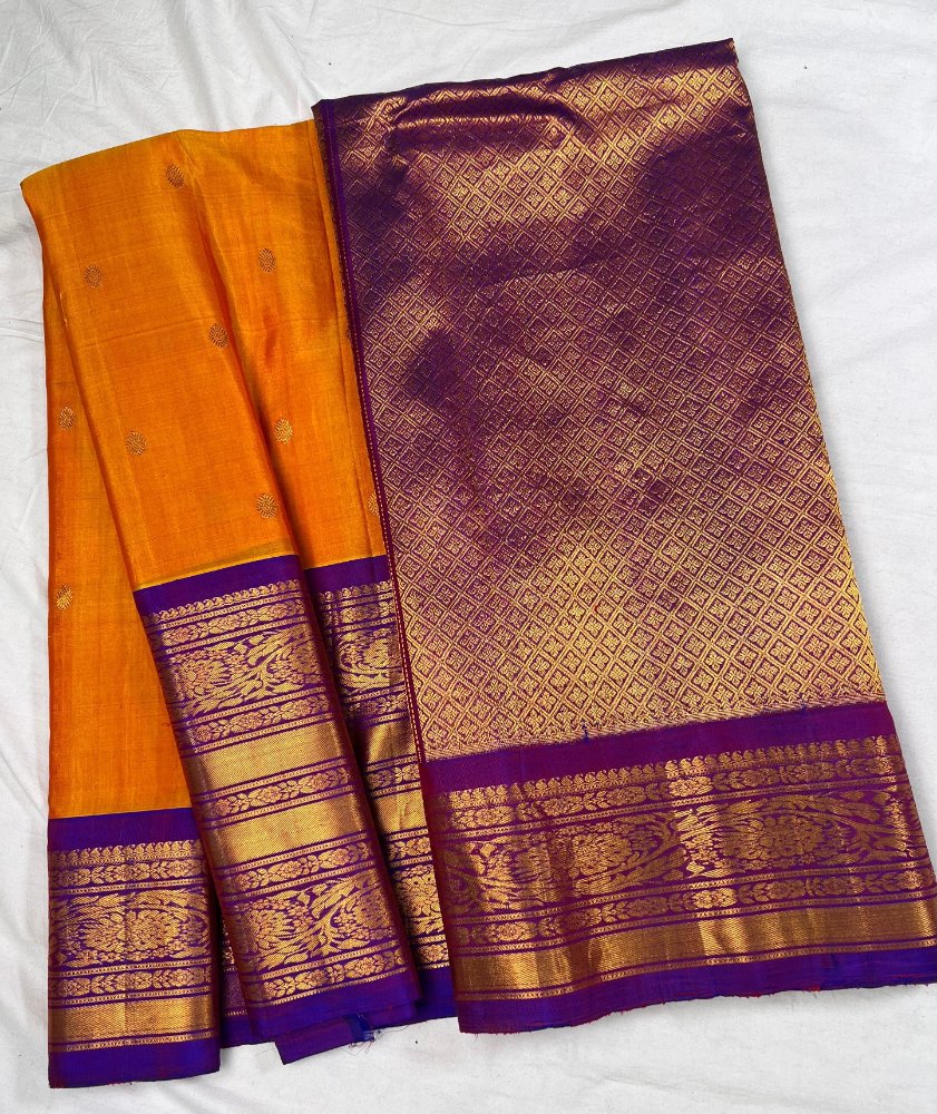 This Gadwal Pure Sico Handloom Saree combines the elegance of silk and the comfort of cotton, featuring a contrast big border and grand pallu.