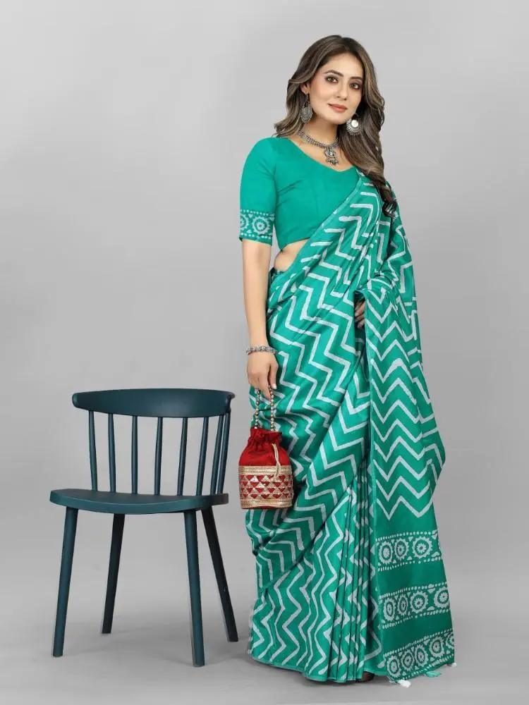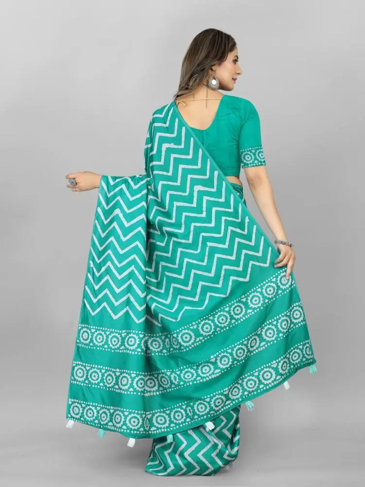 The Hand Wax Batik Saree with Printed Design is a beautifully crafted piece that highlights the art of traditional batik work.