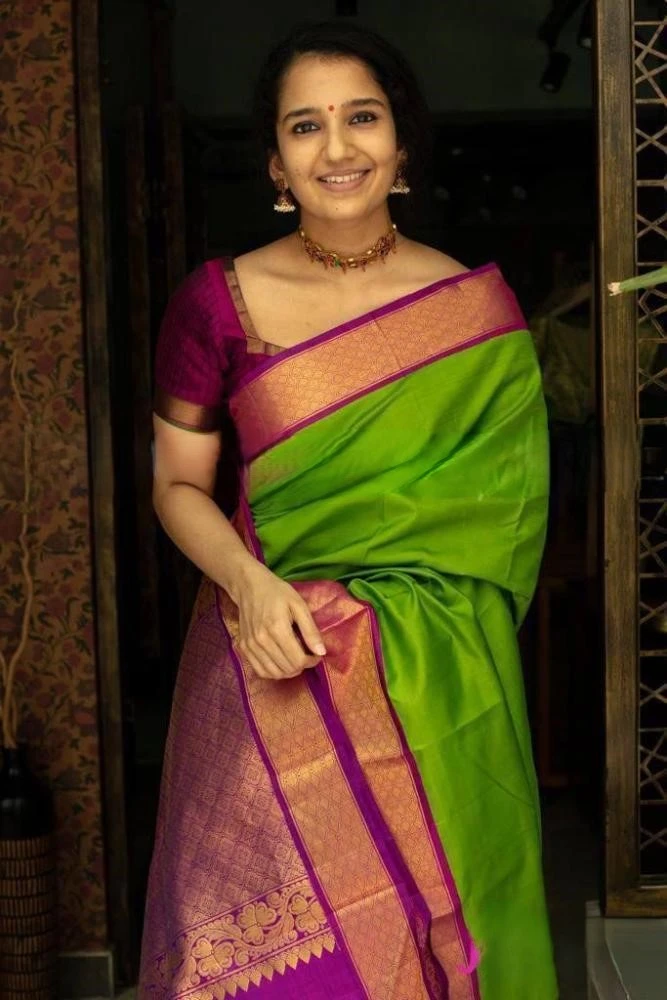 This saree is perfect for those who appreciate traditional craftsmanship with a modern aesthetic, making it ideal for special occasions and cultural celebrations.