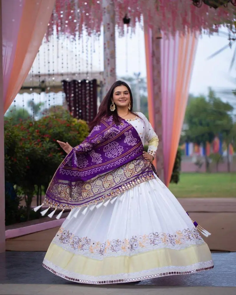 Pure Muslin Lehenga Choli For Navratri In White Code : YNLCVCT41WH
