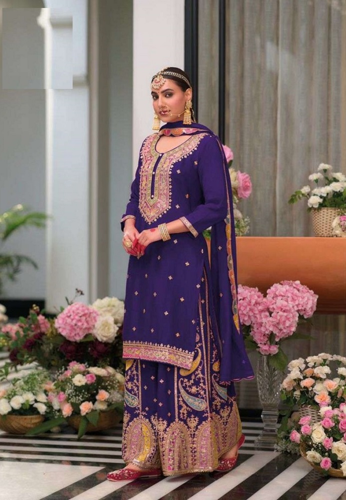 Stunning Heavy Chinon Salwar Suit In Purple Code : TMSKCSTM124793PU