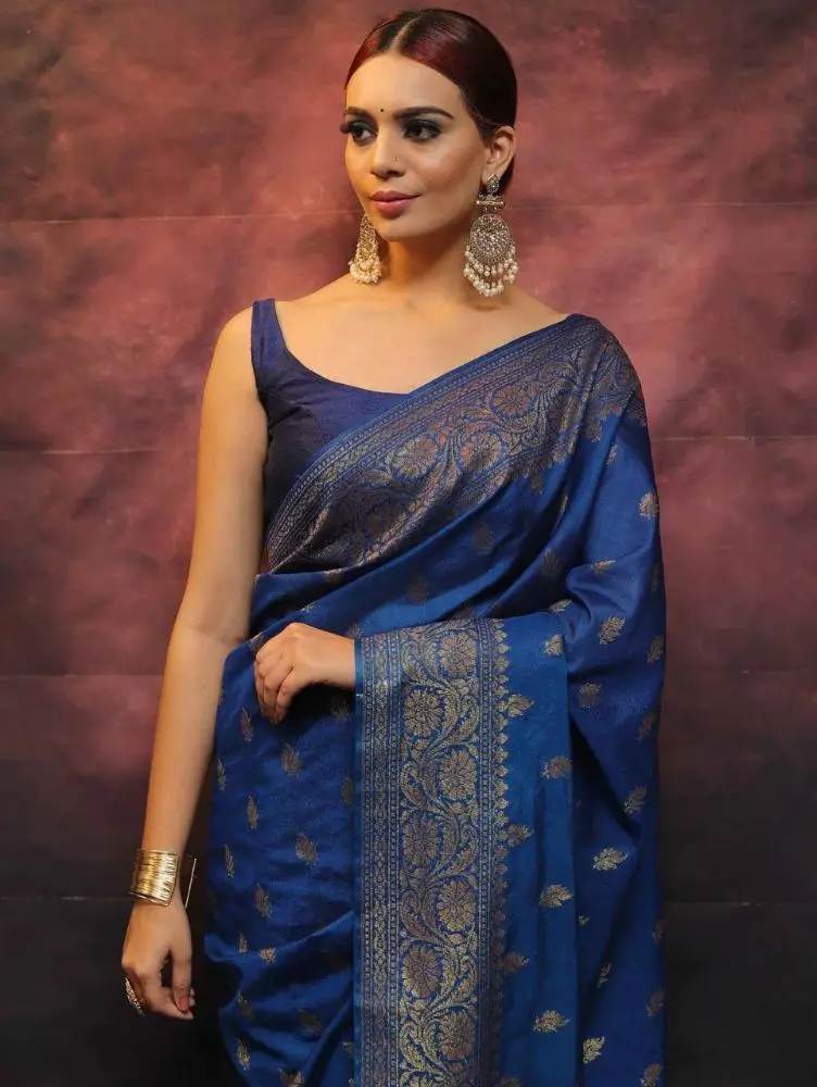 Note: The saree comes with a running blouse, and the blouse worn by the model is for representational purposes.