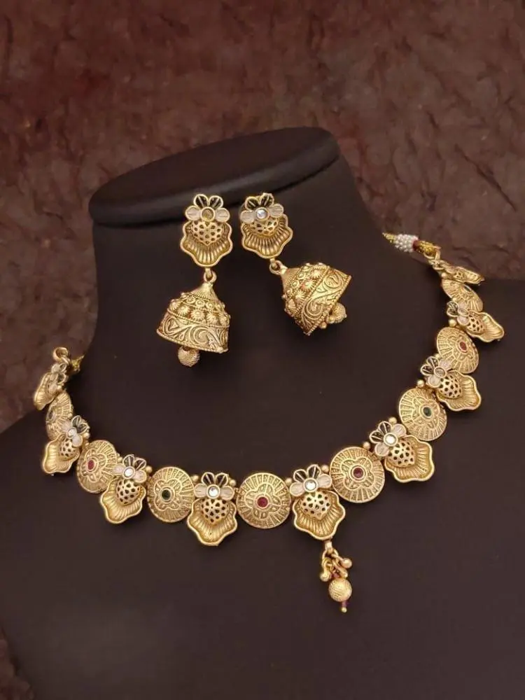 The matching earrings perfectly complement the necklace, making it an ideal set for weddings, festive occasions, or special events.